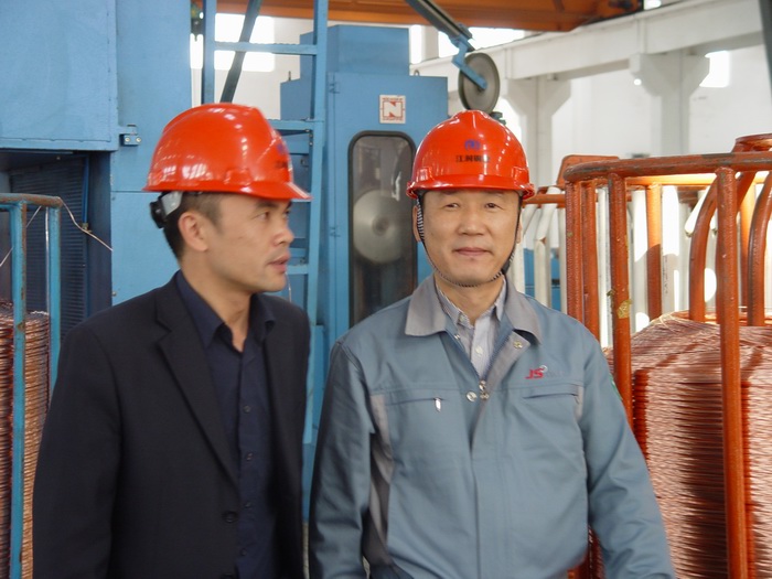 2010年10月15日,JS電纜(江蘇)有限公司金董一行來江潤銅業考察訪問,分別參觀了SCR-7000銅連鑄連軋生產車間、復合銅線車間、銅絞線車間。江潤銅業先進的設備、優質的產品給金董留下了很深的印象。JS電纜是韓國LS集團下屬子公司,產品涉及船舶用、深海用、移動電梯用等橡套特種電纜,在同行業中排名全球第五、亞洲第一。江潤銅業與JS電纜有著多年的業務往來。